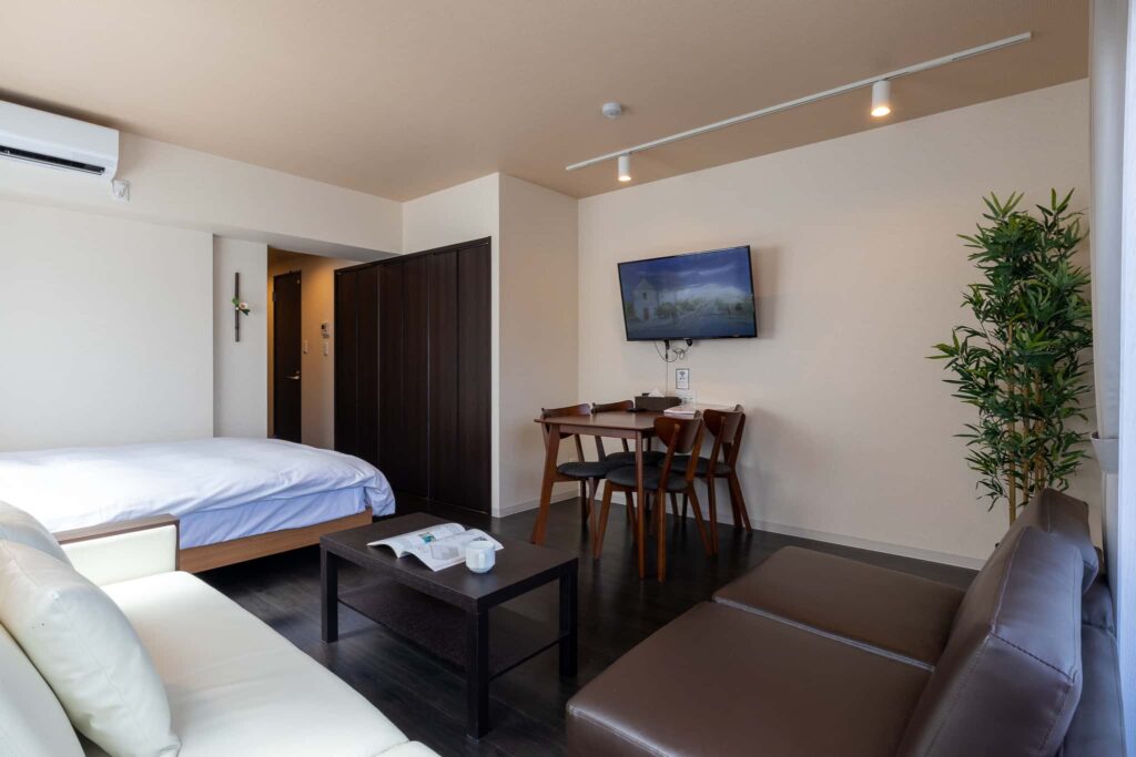 #和洋室 #31m²/1人〜3人 #バス・トイレ付 #禁煙 #インターネット可 #寝室1部屋、シングルベッド2台 #ソファベッド1台 #バスルーム1室 (バスタブ数1)