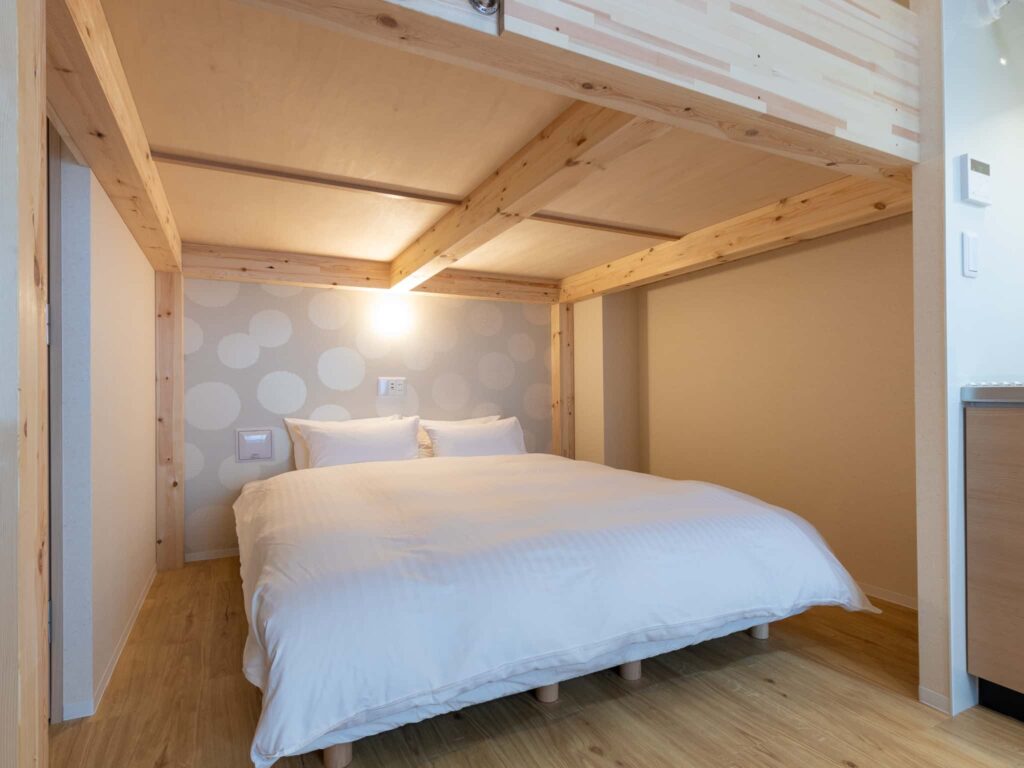 Maisonnette 1号室(Aタイプ) Maisonnette 1号室(Aタイプ) #和洋室 #50m²/1人〜6人 #バス・トイレ付 #禁煙・インターネット可 #寝室1部屋、ダブルベッド1台、シングルベッド1台 #布団/床用マットレス2枚、ソファベッド1台 #バスルーム1室 (バスタブ数1) 部屋詳細を見る