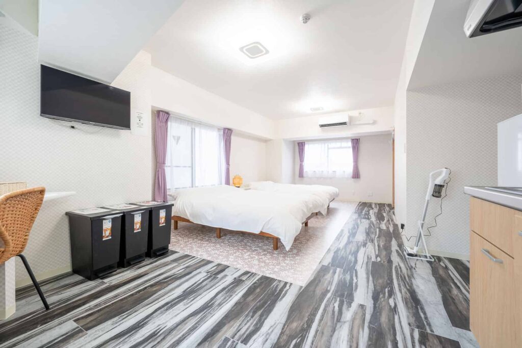 #和洋室 #24m²/1人〜3人 #バス・トイレ付 #禁煙 #インターネット可 #寝室1部屋、ダブルベッド1台、ソファベッド1台 #バスルーム1室 (バスタブ数1)