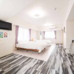 201号室 201号室 #和洋室 #57m²/1人〜11人 #バス・トイレ付 #禁煙,インターネット可 #寝室1部屋、ダブルベッド5台、ソファベッド1台 #バスルーム1室 (バスタブ数1) 部屋詳細を見る