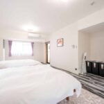 202号室 202号室 #和洋室 #57m²/1人〜11人 #バス・トイレ付 #禁煙,インターネット可 #寝室1部屋、ダブルベッド5台、ソファベッド1台 #バスルーム1室 (バスタブ数1) 部屋詳細を見る