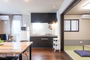 最寄りの糀谷駅から徒歩約4分という利便性ある立地環境です。3寝室、2バスルーム(バスタブ付き1室、シャワーのみ1室)を備え、最大8名程度で快適にご利用いただけます。キッチン、洗濯機、冷蔵庫、無料Wi-Fi、調理器具・食器などが揃っており、自宅のような滞在スタイルが可能です。ファミリーや友人グループでの長期滞在など、幅広い用途にあわせてご利用ください。