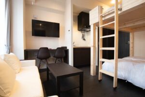 #和洋室 #25m²/1人〜4人 #バス・トイレ付 #禁煙・インターネット可 #寝室1部屋 #シングルベッド2台、布団/床用マットレス2枚、ソファベッド1台 #バスルーム1室 (バスタブ数0)